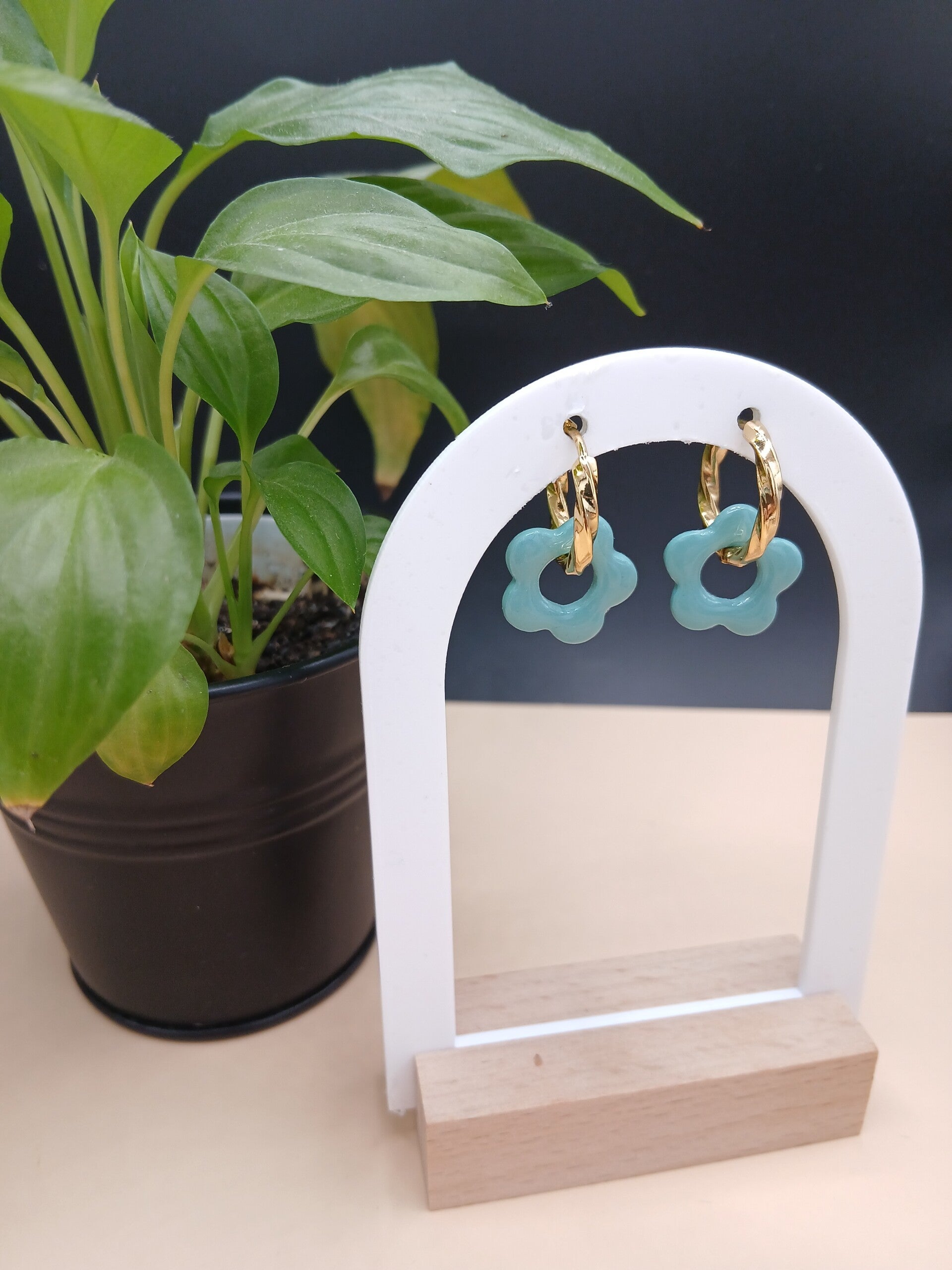 Bleu menthe / dorées torsadées 19mm / 19mm - 13,00 €
