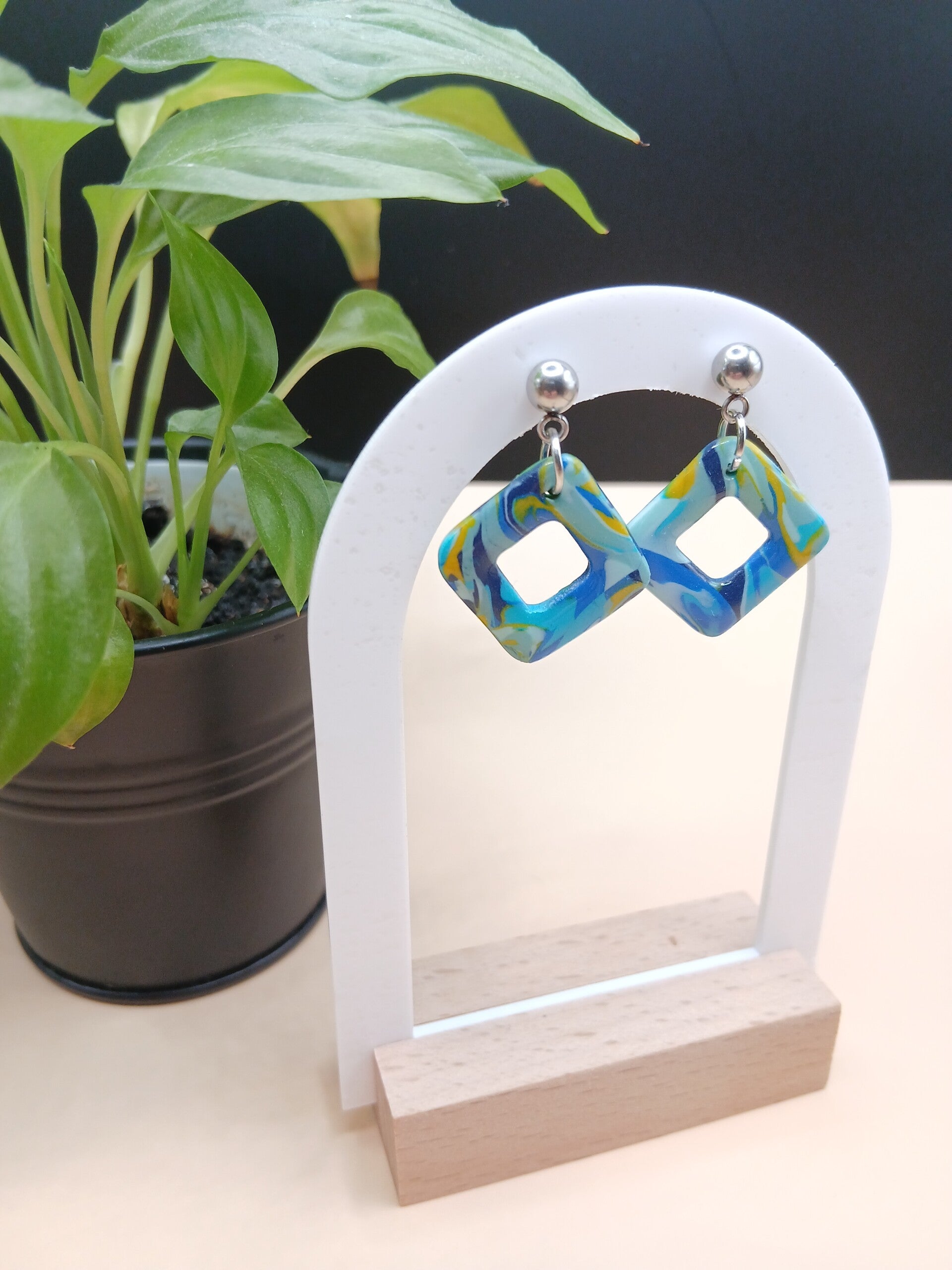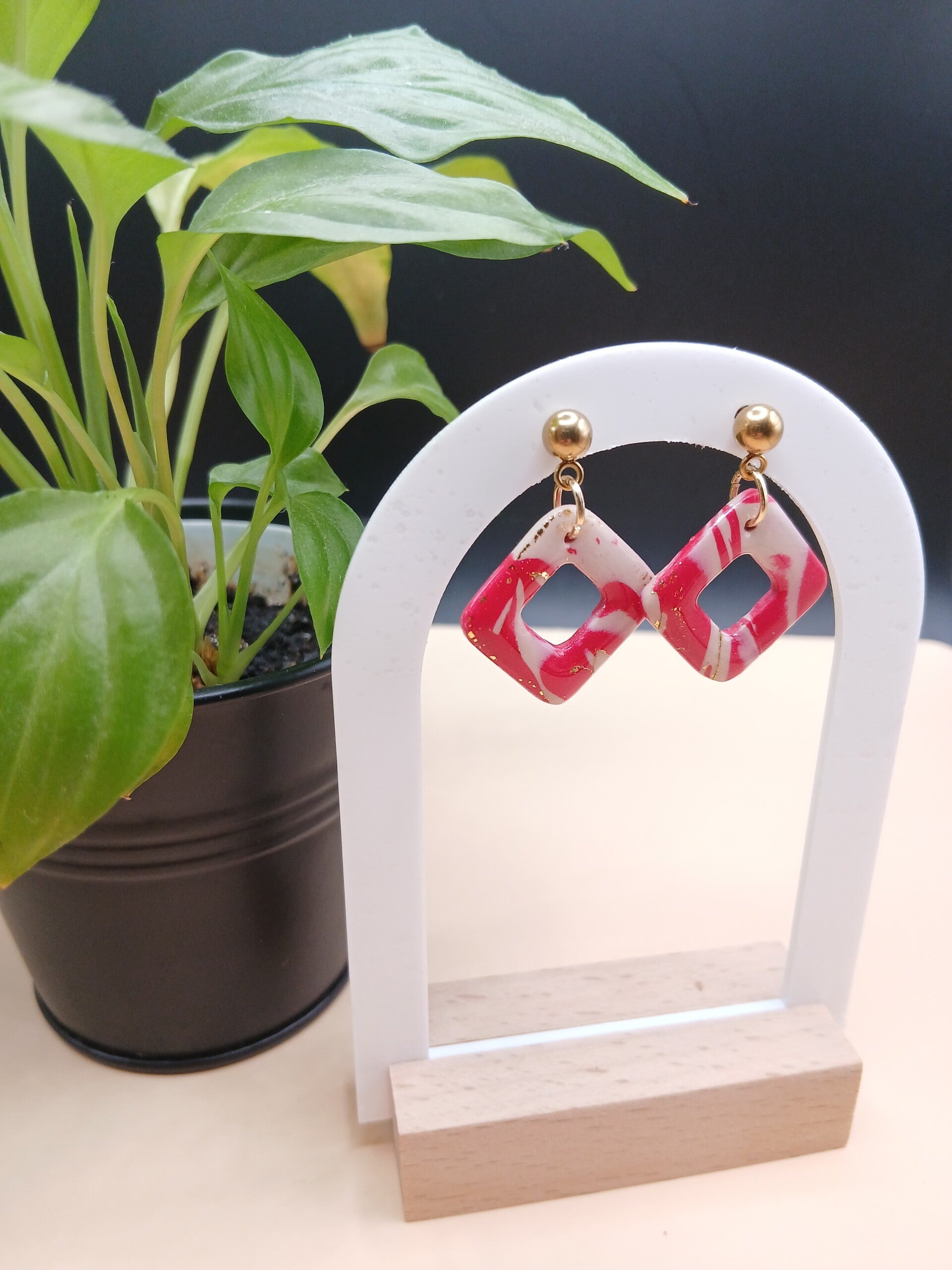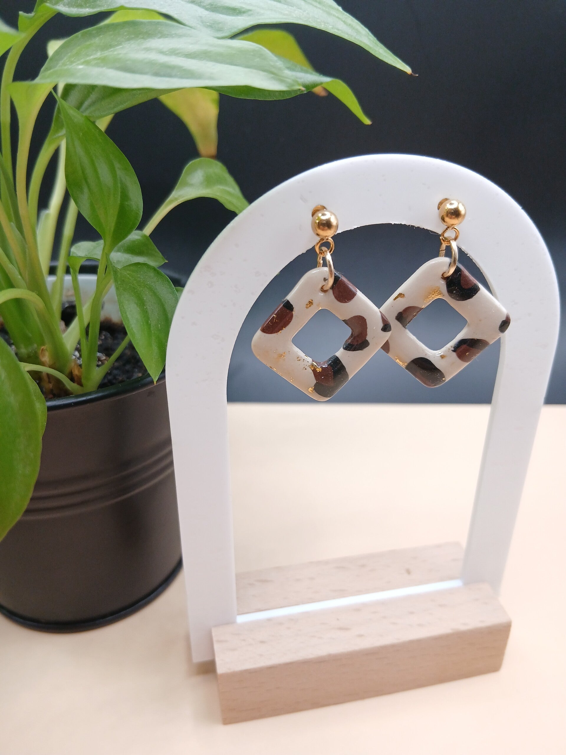 Découvrez les boucles d’oreilles Loséa ajourées, un élégant mélange de légèreté et de style. Chaque pièce est façonnée à la main en pâte polymère, avec une forme géométrique ajourée qui capte la lumière et apporte du mouvement à votre tenue.