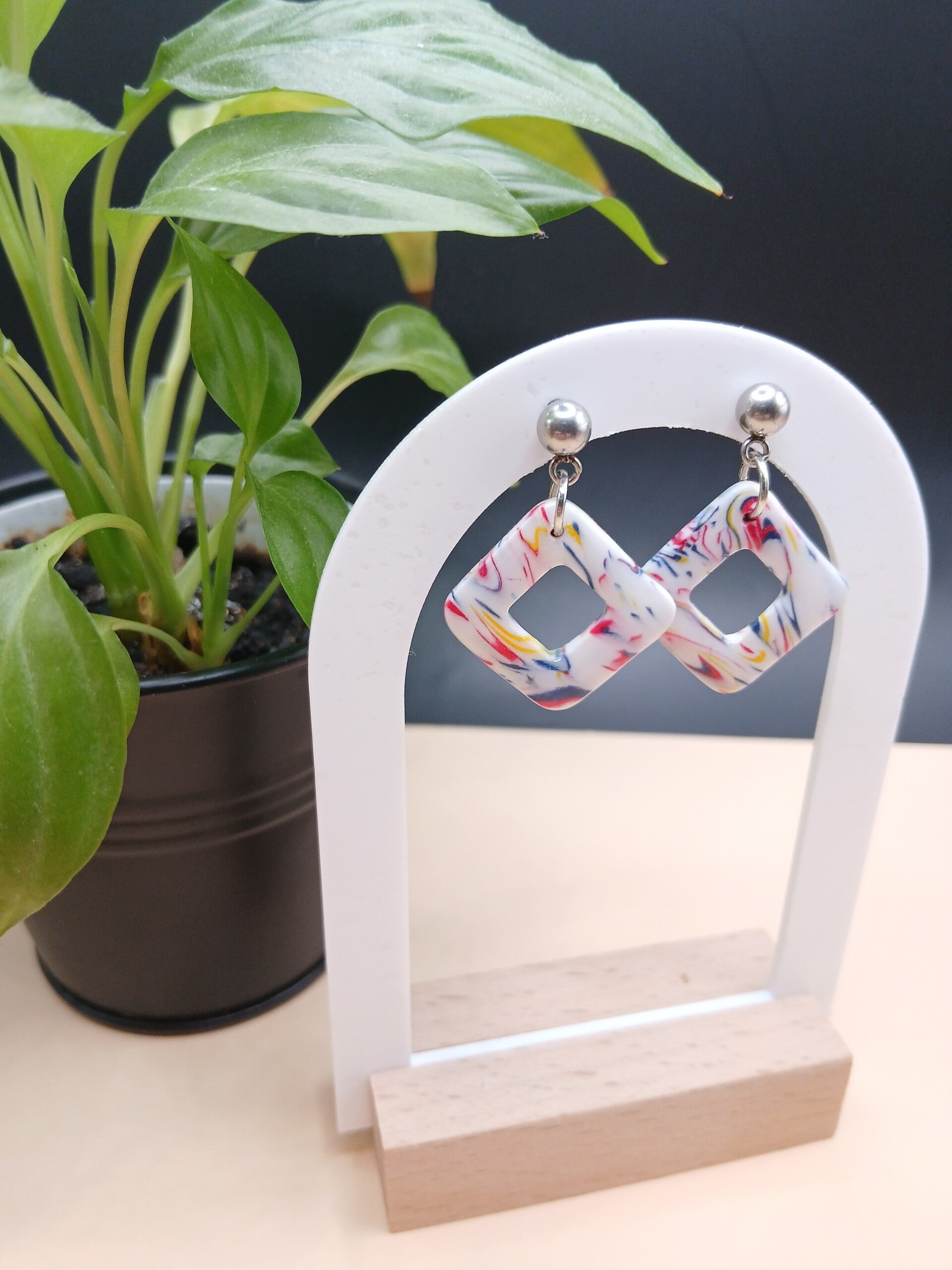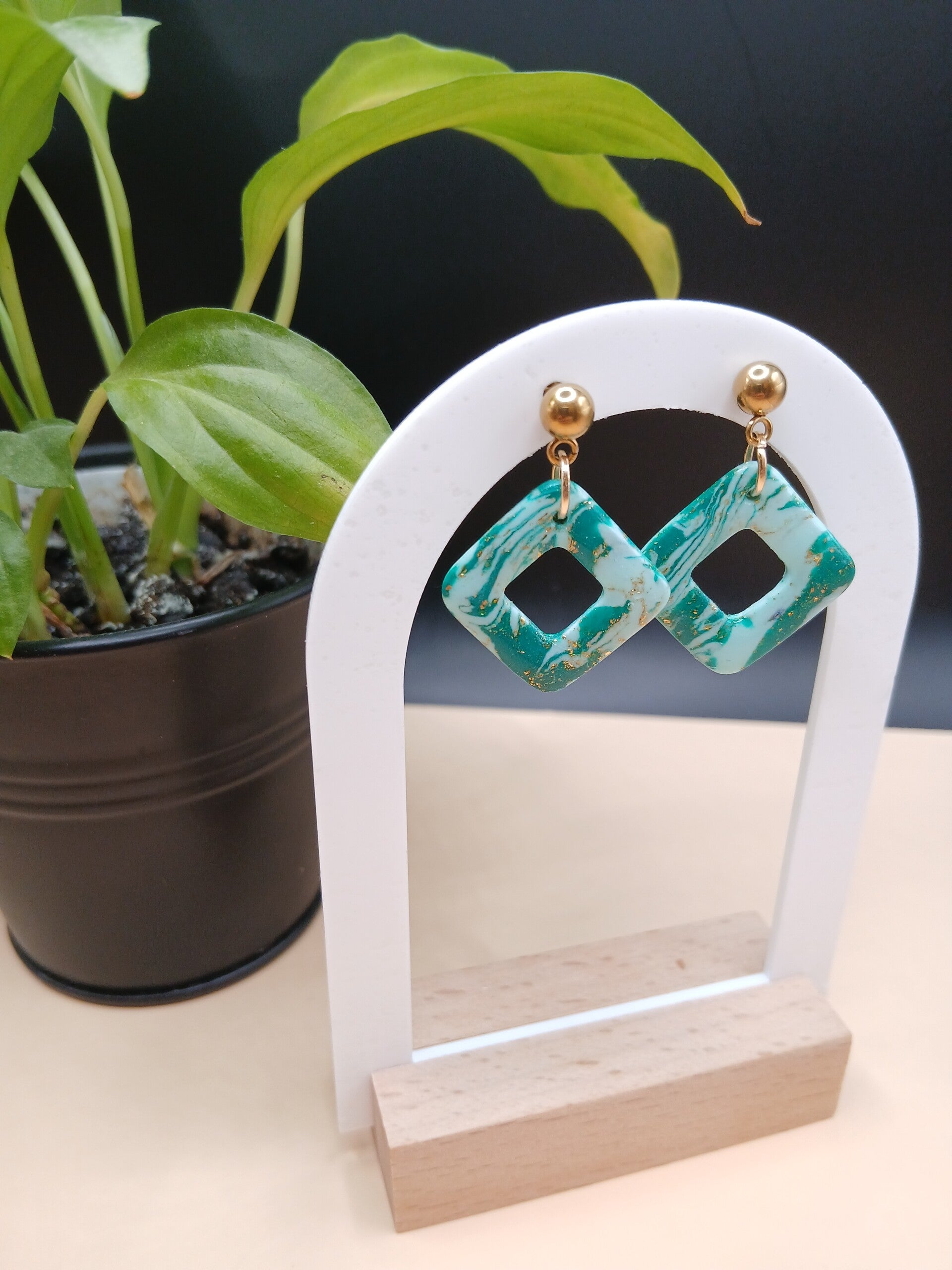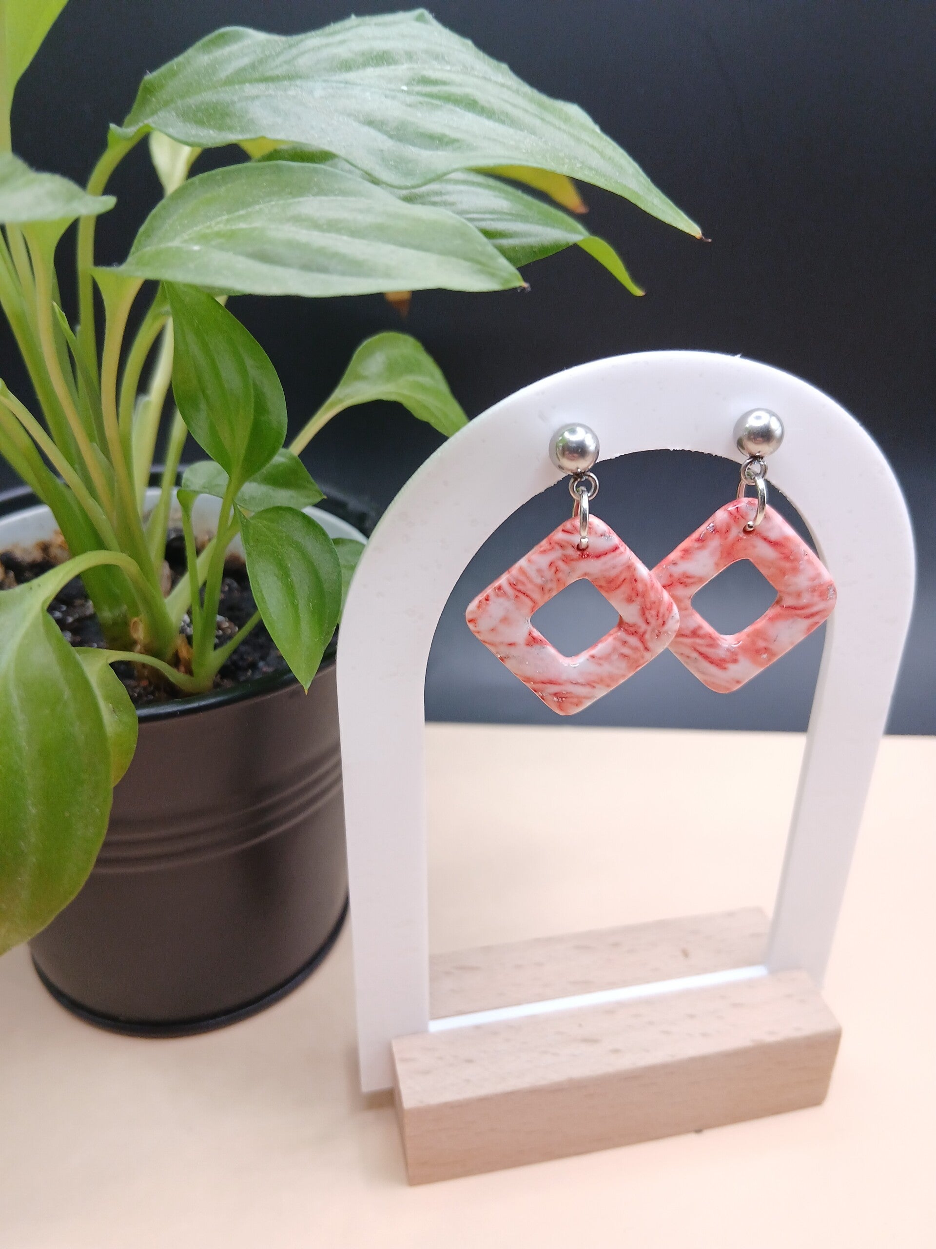 Découvrez les boucles d’oreilles Loséa ajourées, un élégant mélange de légèreté et de style. Chaque pièce est façonnée à la main en pâte polymère, avec une forme géométrique ajourée qui capte la lumière et apporte du mouvement à votre tenue.